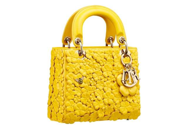 鮮やかなイエローの花々の中に、ディオールを象徴する小さなミツバチがとまっているデザイン。