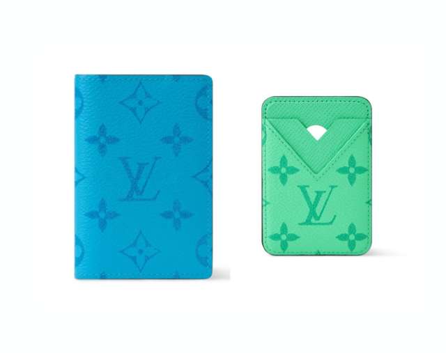 鮮やかな色彩のレザーと同系色のモノグラム・キャンバスを組み合わせたレザーグッズもお目見え。ラインナップは、スリムなカードケースやiPhoneのマグセーフに対応するカードケース、パスポートカバーなどを揃える。