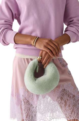 また、「ケーエスデュオ シアリング クロスボディ バッグ」は、ボディに配したシアリング素材のもこもこ感と、優しいミントグリーンカラーがマッチしたソフトなムードが魅力。ミニポーチやストラップはレザーの表情を活かし、素材のコントラストが際立つ洗練されたデザインとなっています★冬の装いの主役アイテムとして活躍しそうですね★