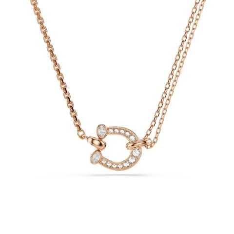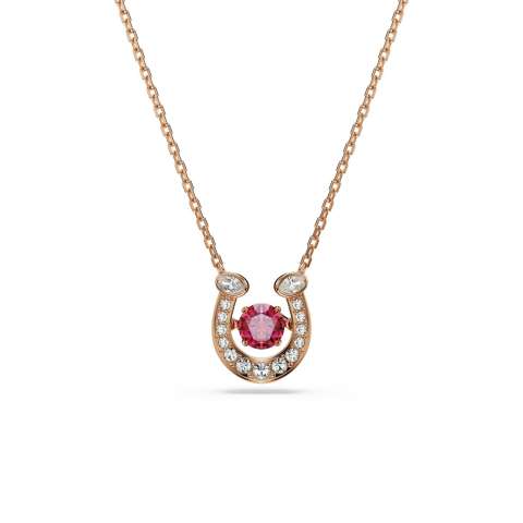 揺らめくレッドのクリスタルストーンをあしらった馬蹄型トップのペンダントも要チェックです。緻密なクリスタル・パヴェが高級感を演出。肌に馴染むピンクゴールドカラーの細めチェーンを採用しているため、首元にさりげなく輝きを添えることができます★そのほか、パヴェのみを配したシンプルな馬蹄モチーフのペンダントも展開します。