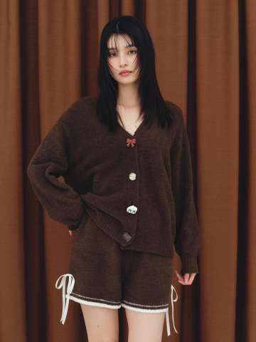 リボンケーキやチョコレートモチーフのボタンが目を引くニットカーディガンも要チェック。ゆったりとしたサイズ感で、リラックスタイムにうれしい一枚となっています★